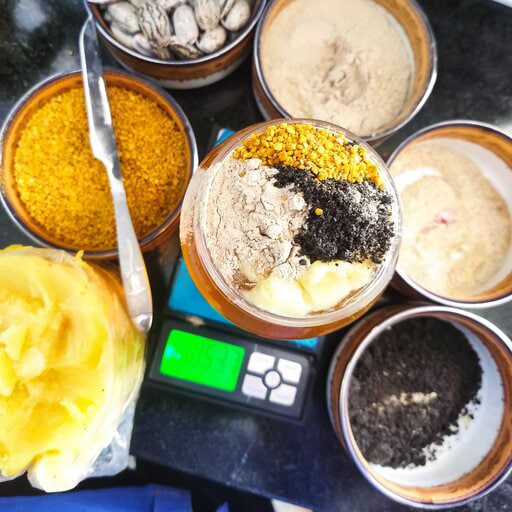 | این محصول رو حتما قبل از مصرف هم بزنید تا یک دست بشه بعد اینکه داخل کابینت آشپزخانه میتونید قرار بدید و هر زمان که نیاز داشتید استفاده کنید اگر خواستید طولانی مدت نگه دارید بالای پنج ماه میتونید داخل یخچال نیز قرار بدید. | ترکیبات : عسل چهل گیاه کوهستان مغز بادام هندی مغز پسته مغز فندق مغز گردو | این محصول رو حتما قبل از مصرف هم بزنید تا یک دست بشه بعد اینکه داخل کابینت آشپزخانه میتونید قرار بدید و هر زمان که نیاز داشتید استفاده کنید اگر خواستید طولانی مدت نگه دارید بالای پنج ماه میتونید داخل یخچال نیز قرار بدید. | چه کسانی نباید از این محصول استفاده کنند ؟ افرادی که قرص های ضد افسردگی مصرف می کنند . بیماران دیابتی که انسولین مصرف می کنند . افرادی که از قرص برای درمان پروستات استفاده می کنند . برای افرادی که اعتیاد دارند ( مواد مخدر تریاک مصرف می کنند ) افرادی که از ترک اعتیاد آنها کمتر از یکسال گذشته است نیز مناسب نمی باشد زیرا کبد این افراد به شدت ضربه دیده است . | موم عسل ماده ای است که دستگاه گوارش انسان و سایر جاندران قادر به تجزیه مولکولهای آن نیست یعنی پس از تغذیه جذب نمی شود و به همان صورت که تغذیه شده است از بدن دفع می گردد . اما می تواند به سرعت به وسیله پوست جذب شود به همین دلیل امروزه آن در ساخت وسایل بهداشتی آرایشی نظیر کرم ها، پمادها ، ماسک های زیبایی صورت و غیره از اهمیت بسزایی بر خوردار است. گفته شده است مصرف موم با عسل برای پاک کردن راه های بینی و حلق مفید است و در مورد سینوزیت، تنگی نفس و زکام تاثیر دارد. در این مورد توصیه شده است که بیماران باید هر نصف قاشق مربا خوری عسل را با موم مصرف نموده و موم آن را یک ربع بجوند. | ||||||||||||||||||||||||